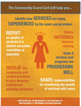 The main purpose of the Community Score Card is to work together to positively influence the quality, efficiency and accountability with which services are provided at different levels. These may include, education, water, sanitation and hygiene, health, agriculture, etc.